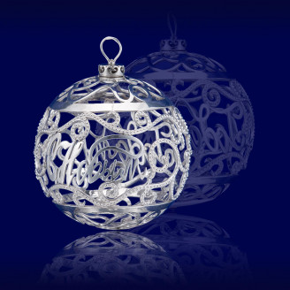 Серебряная чарка выполнена в виде большого цветка с шестью лепестками и тонкой чеканкой наружной части, изображающей листья и изящные орнаменты. Две ручки чарки фигурные, повторяющие общие мотивы, используемые для дизайна изделия. Изюминкой стала миниатюрная фигурка птички, установленная в центре чарки и отличающаяся тонкой проработкой деталей. Изделие поставляется в шкатулке из натурального дерева с изящным замочков, отличающийся тонкой работой. Подложкой служит бархатная подушка.
