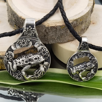 Он выполнен в виде двухсторонней фигурки Огненной Белки, опирающейся на ствол дерева. Окружающее фигурку кольцо декорировано рельефными изображениями шишек, орнамент повторяется на петле подвеса. Носить тотем можно вместе с цепочками или шнурками, такой годослов станет интересным и полезным дополнением образа.
