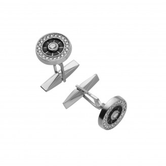 Зажим выполнен из серебра 925 пробы, для обработки используются комбинированные методы. Вставки – эмали черного цвета, подчеркивающие интересный дизайн украшения для мужчин. Для крепления на ткани галстука используются зубчики, не дающие аксессуару сползти с материала. Такая система фиксации подходит для плотных и средних тканей, надежно удерживая галстук в требуемом положении. К сорочке зажим крепится посредством кольца на тонкой цепочке.