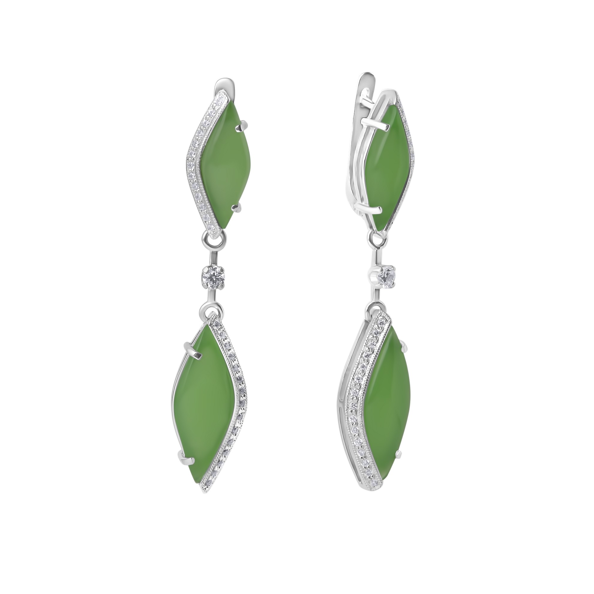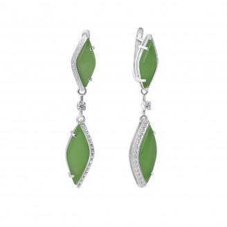 Серьги с хризопразами арт. 2504хр с английским замком отличаются изящным дизайном. Серебряные серьги с большими подвесками станут отличным дополнением элегантного образа для уверенной в себе женщины. Вставка – завальцованный хризопраз овальной формы, декорированный изящным растительным орнаментом. Насыщенный зеленый цвет украшение красивым и элегантным, подчеркивающим женскую красоту.